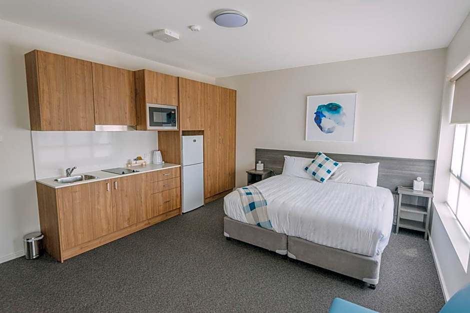 The studio features a private bathroom, air conditioning, a tea and coffee maker, as well as a seating area with a flat-screen TV. The well-fitted kitchenette has a stovetop, a refrigerator, kitchenware and a microwave. The studio provides a TV, a wardrobe, a carpeted floor, heating as well as city views. The unit offers 1 bed.